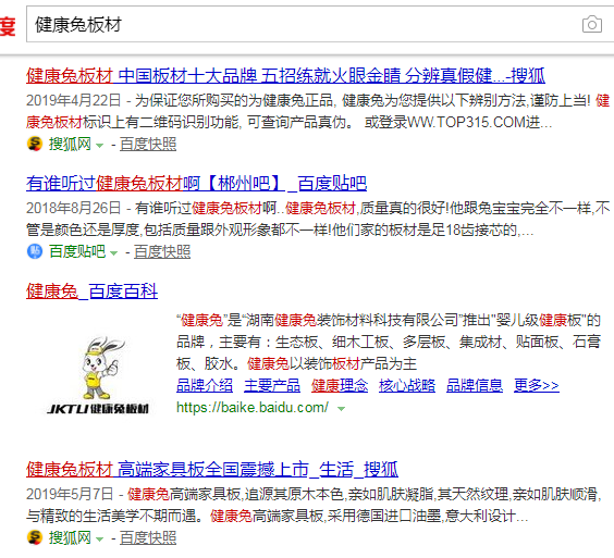 湖南健康兔板材在百度平臺的品牌現(xiàn)狀